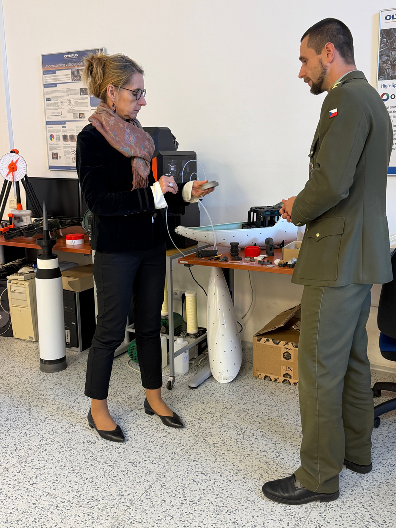 Součástí návštěvy vedoucí Zastoupení Evropské komise v ČR byly také komentované ukázky výsledků vědecko-výzkumné činnosti na katedrách Fakulty vojenských technologií v Kasárnách Černá Pole a Šumavská.